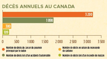 L'exposition au radon est la première cause de cancer du poumon chez les non-fumeurs. On estime que 16 % des cancers du poumon sont causés par l'exposition aux rayonnements, entraînant plus de 3 000 décès de cancer du poumon au Canada chaque année.
